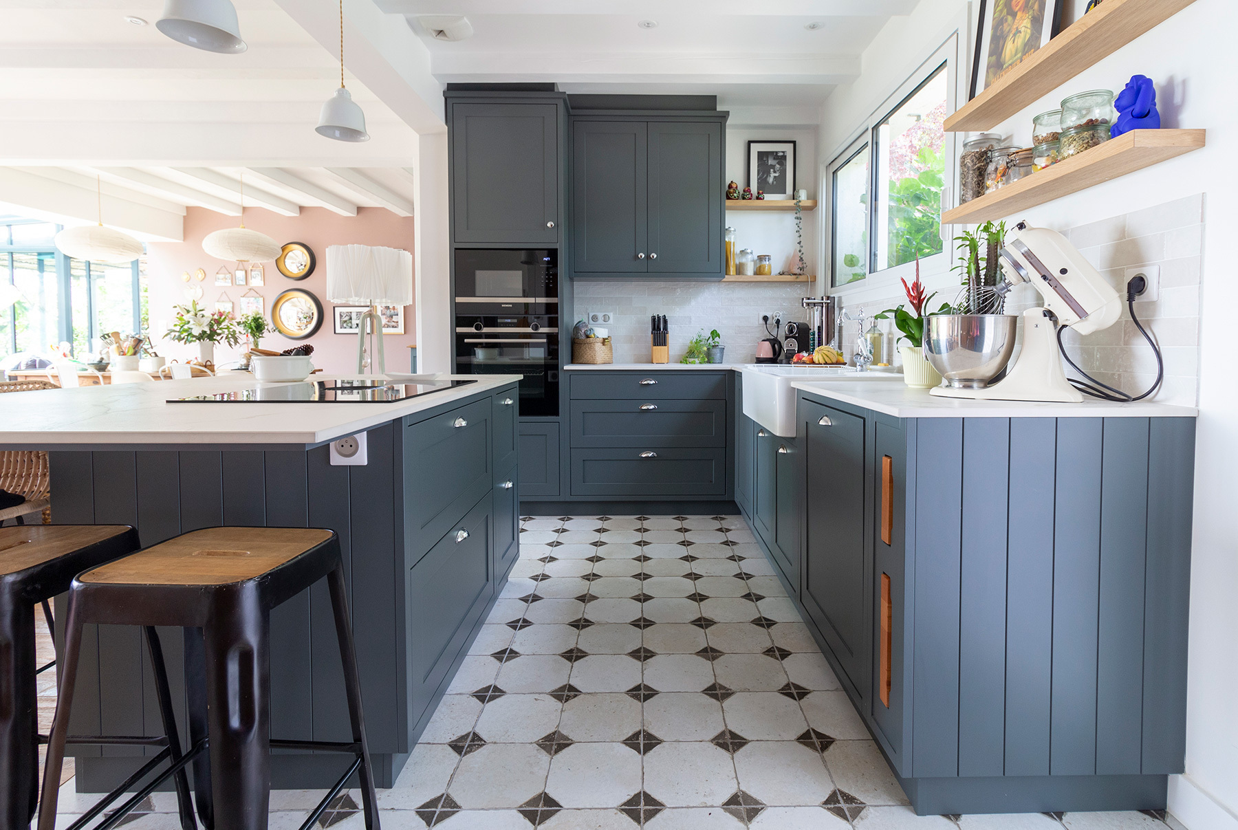 On adore l’association des matériaux, des couleurs et la décoration qui vient sublimer cette cuisine